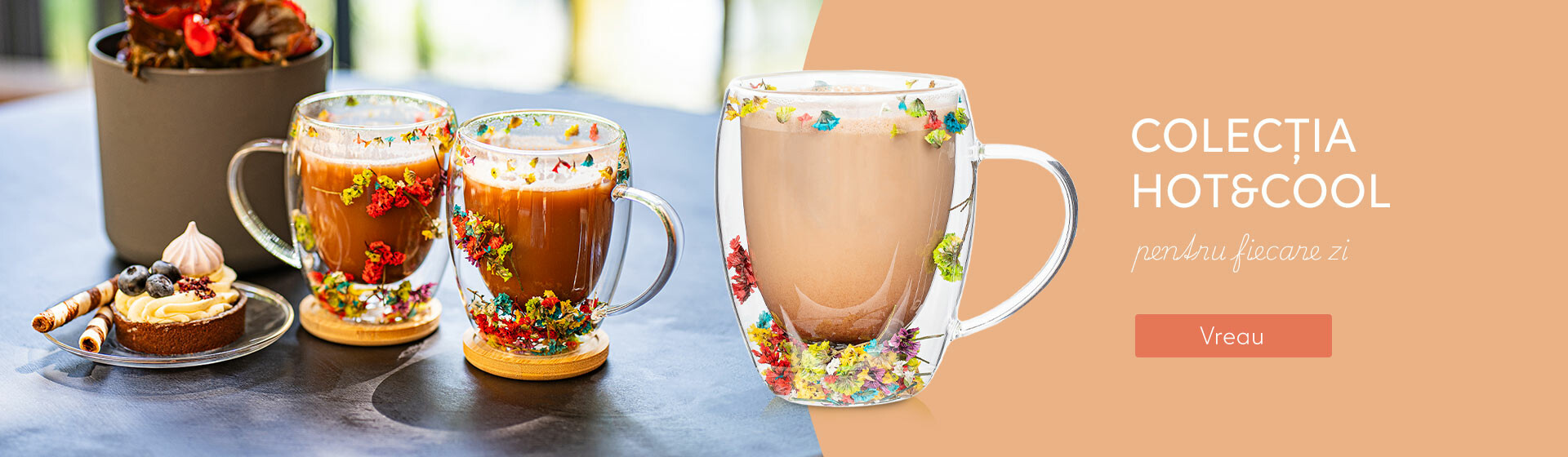 Pahare termo 4Home pentru cappuccino BlossomHot&Cool, 270 ml, 2 buc.