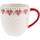 Cana Flori tricotate este o cană distinctivă de iarnă, care combină porțelanul elegant cu un relief ingenios care amintește de un model tricotat. Partea inferioară a canei are aspectul unui pulover cald, în timp ce partea superioară este decorată cu un model delicat de flori în stilul tradițional de iarnă. Urechea roșie contrastantă accentuează aspectul general și conferă canei un caracter plăcut și cald.