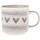 Cana ceramică Inimioare dă o impresie delicată și confortabilă, iar decorul său amintește de desenele manuale inspirate din modelele populare. Pe suprafață se alternează linii fine, puncte și inimioare, creând un aspect armonios și plăcut, ca acasă. Forma cănii este ușor rotunjită spre fund și completată de un mâner confortabil, care facilitează ținerea chiar și când este plină.