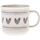 Cana ceramică Inimioare dă o impresie delicată și confortabilă, iar decorul său amintește de desenele realizate manual, inspirate din modelele populare. Pe suprafață se alternează linii fine, puncte și inimioare, creând un aspect armonios și plăcut, ca acasă. Forma cănii este ușor rotunjită spre fund și completată de un mâner confortabil, care facilitează ținerea chiar și când este plină.