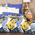 Fața de pernă este cu două fețe - o parte este imprimată, iar cealaltă parte este albastră. Este confecționat din bumbac 100% plăcut și confortabil și are închidere cu fermoar. Fețele de pernă sunt cusute din metraj și pot varia ușor din cauza varietății motivului.